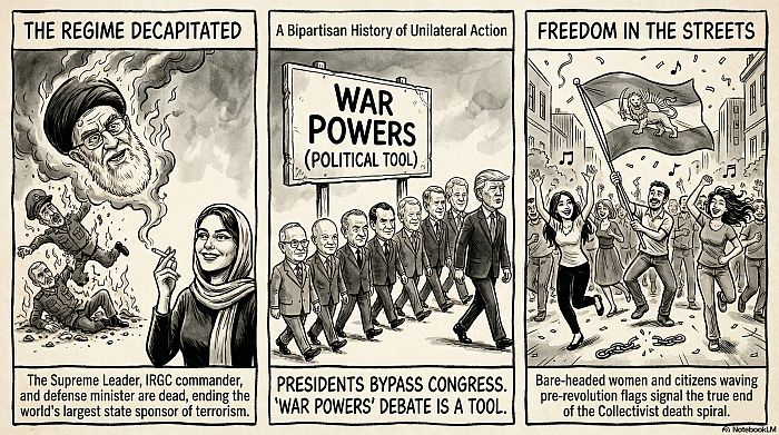 Look at the pattern. Republican military engagements have historically come with specific goals, timelines, and exit strategies. H.W. Bush’s Gulf War had a clear objective, liberate Kuwait, a broad coalition and a withdrawal. Reagan’s Grenada was in and out. Democratic military engagements, by contrast, have a habit of becoming open-ended nation-building projects: LBJ’s Vietnam, Obama’s Libya.